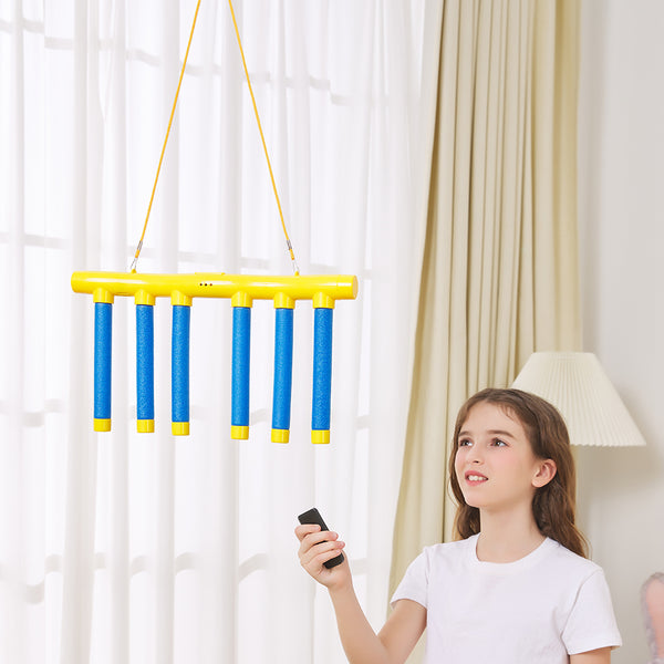 The upgrade here is the remote control with 3 adjustable speed settings. Speed 1 is perfect for kids or beginners building basic hand-eye coordination—drops are predictable enough to catch successfully while still challenging. Speed 2 is where most adults start getting humbled—reactions need to be faster, focus needs to sharpen. Speed 3 is genuinely difficult and makes for great competitive play when everyone's warmed up. The remote control means no reaching up to adjust settings mid-game, keeping the flow going during tournaments or timed challenges. The randomized drop pattern keeps it unpredictable—you can't memorize sequences, you have to actually react.