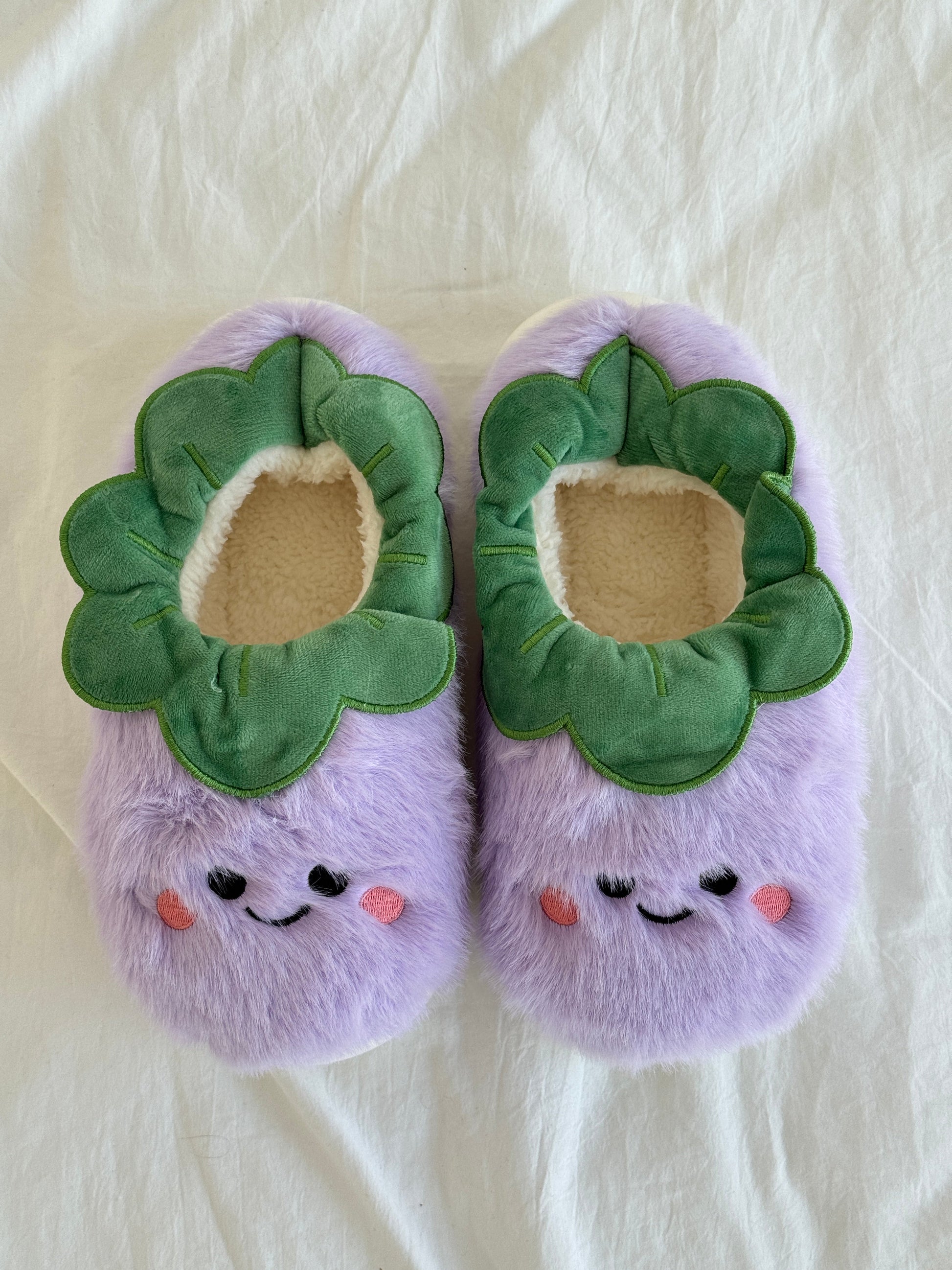 Croissant/ Peanuts/ Fried egg/ Purple Eggplant/ Teapot Slippers Soft Comfy Memory Foam Non-slip Indoor House Shoes
