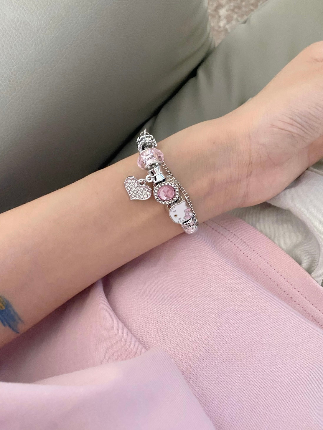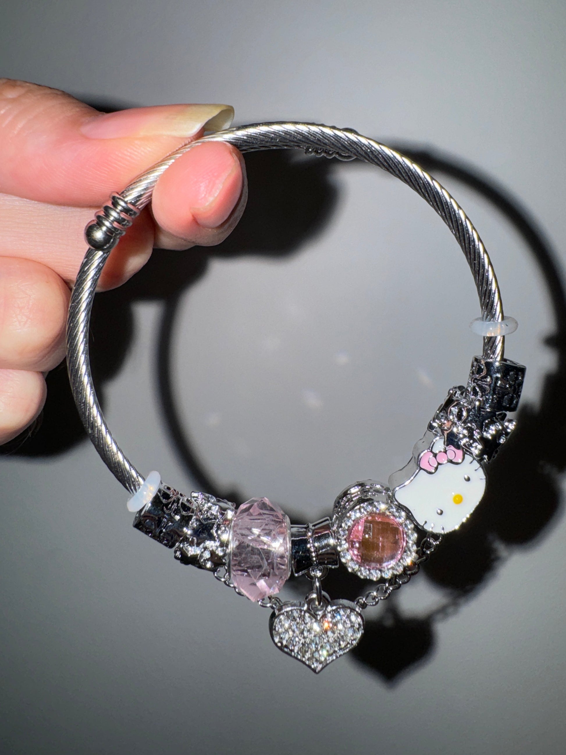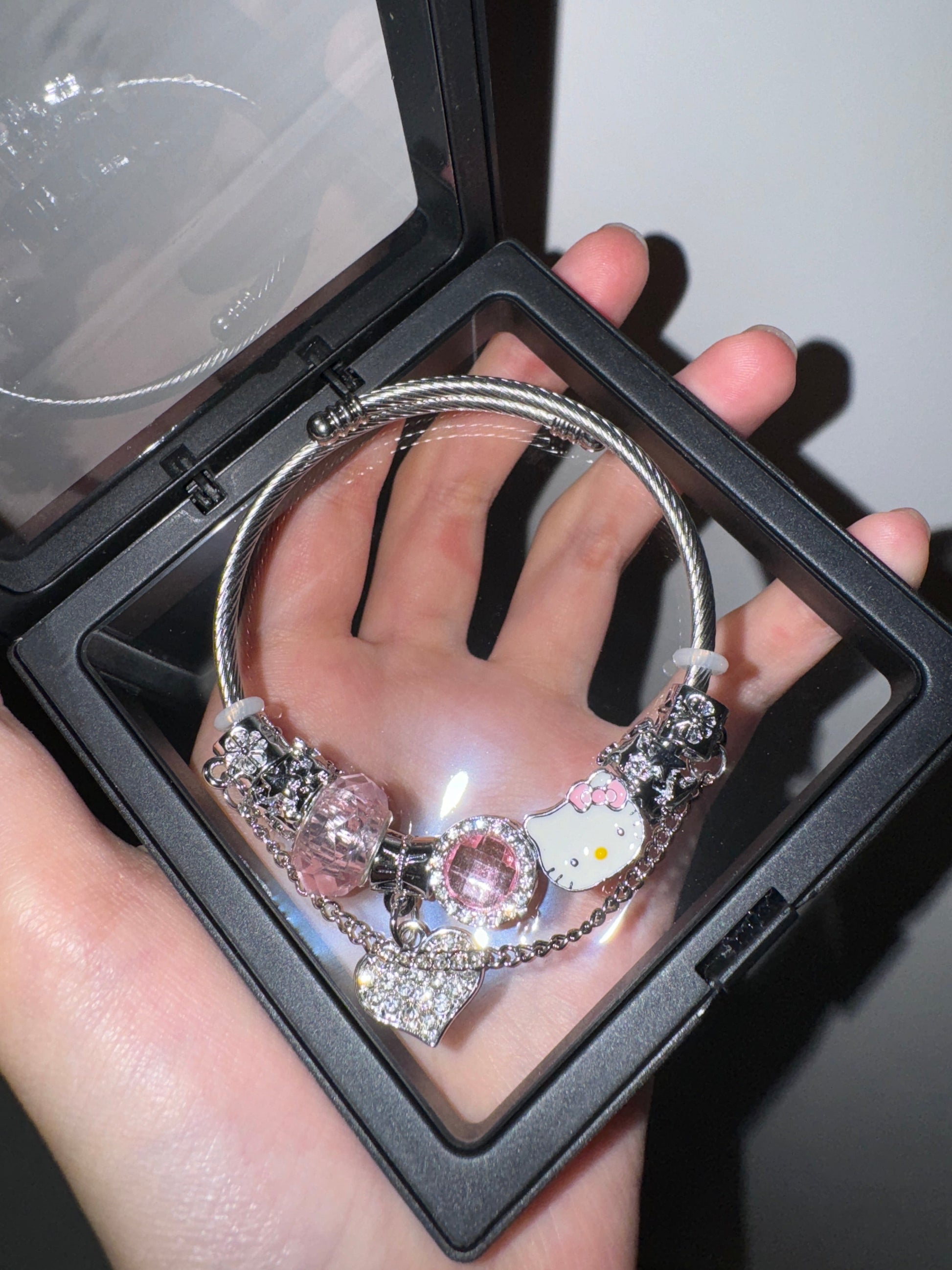 KT Pandora Charm Bracelets Stainless Steel Bangle Bracelet Birthday Christmas Jewelry Gift for Women Girls