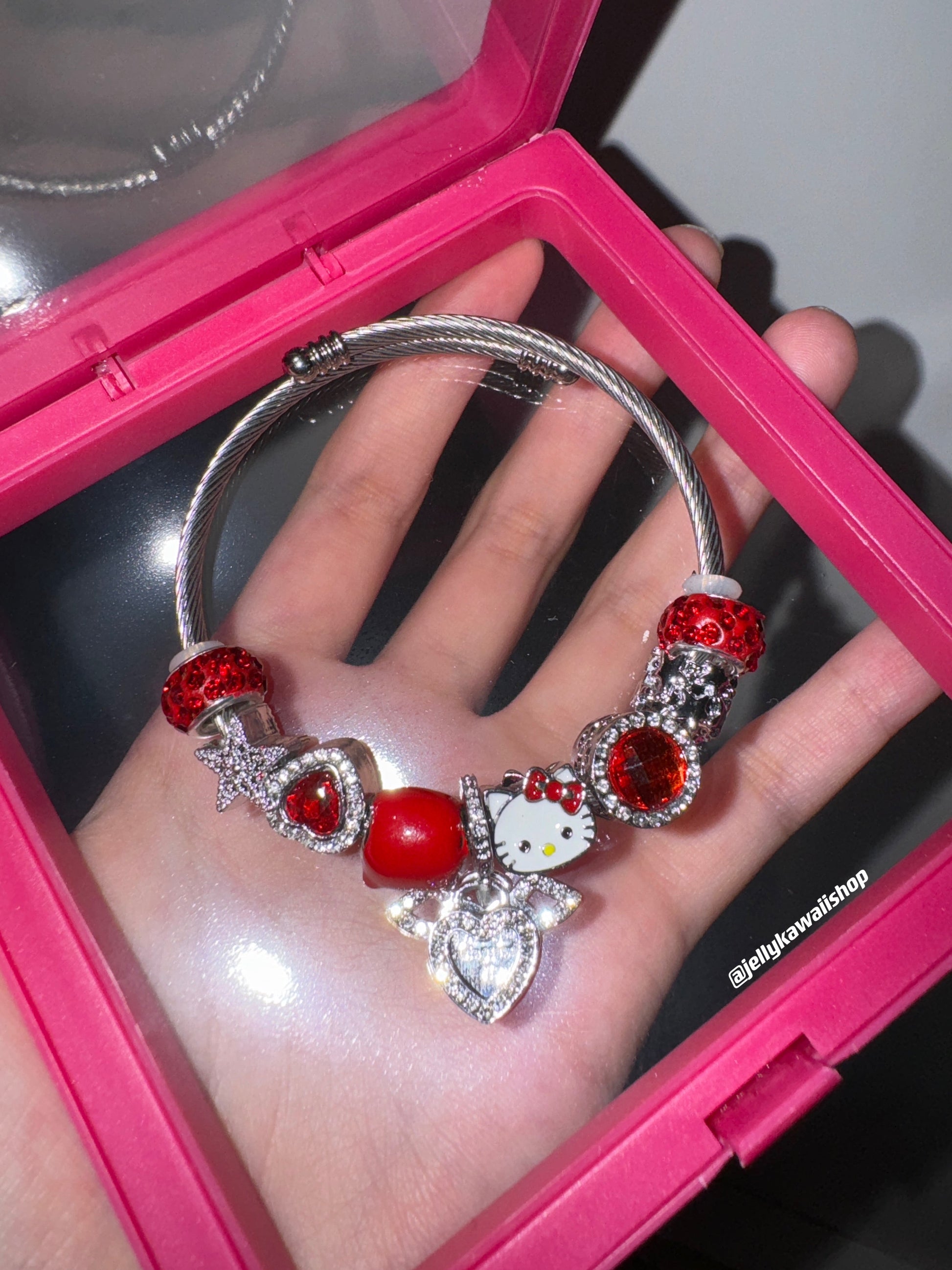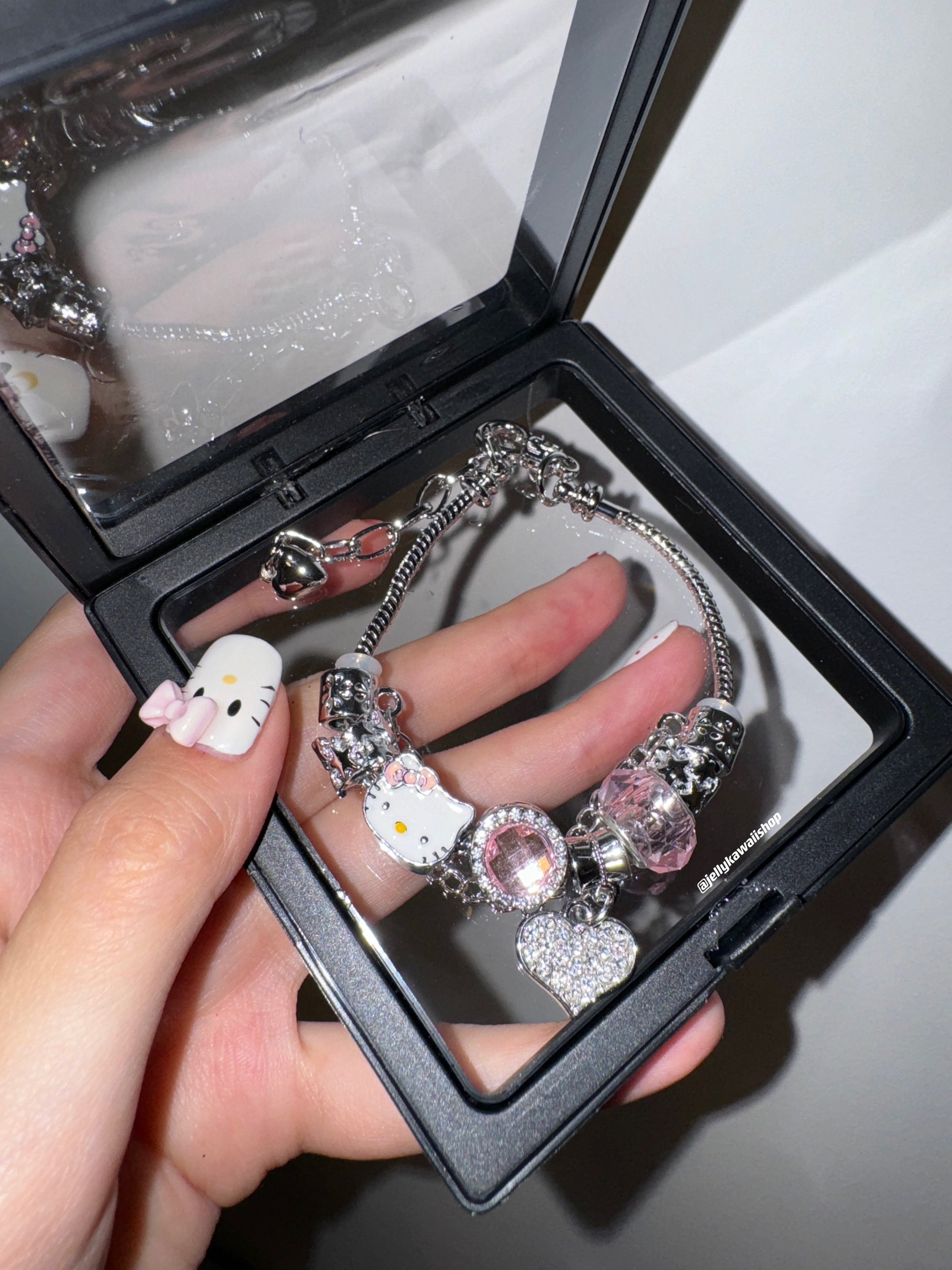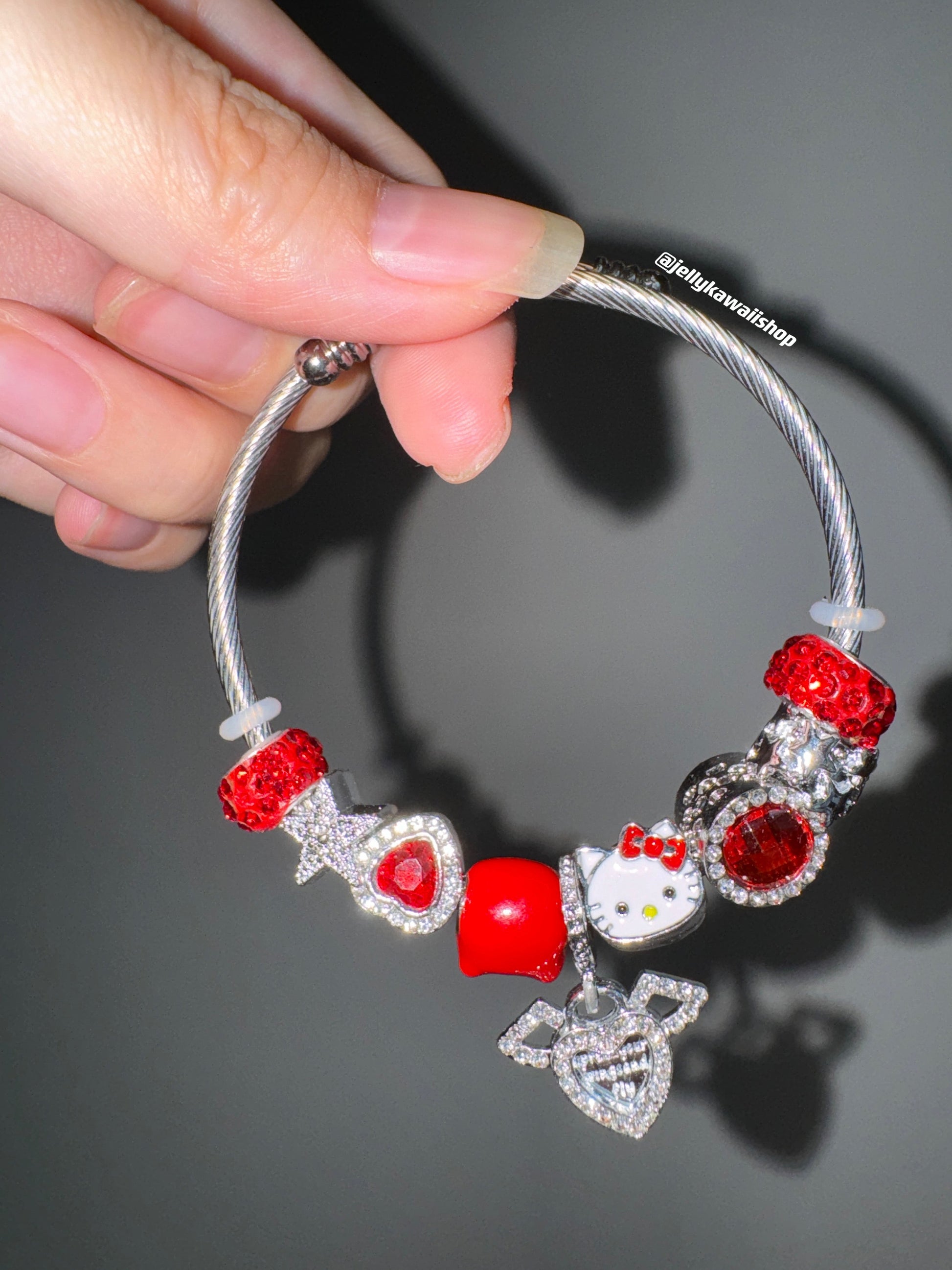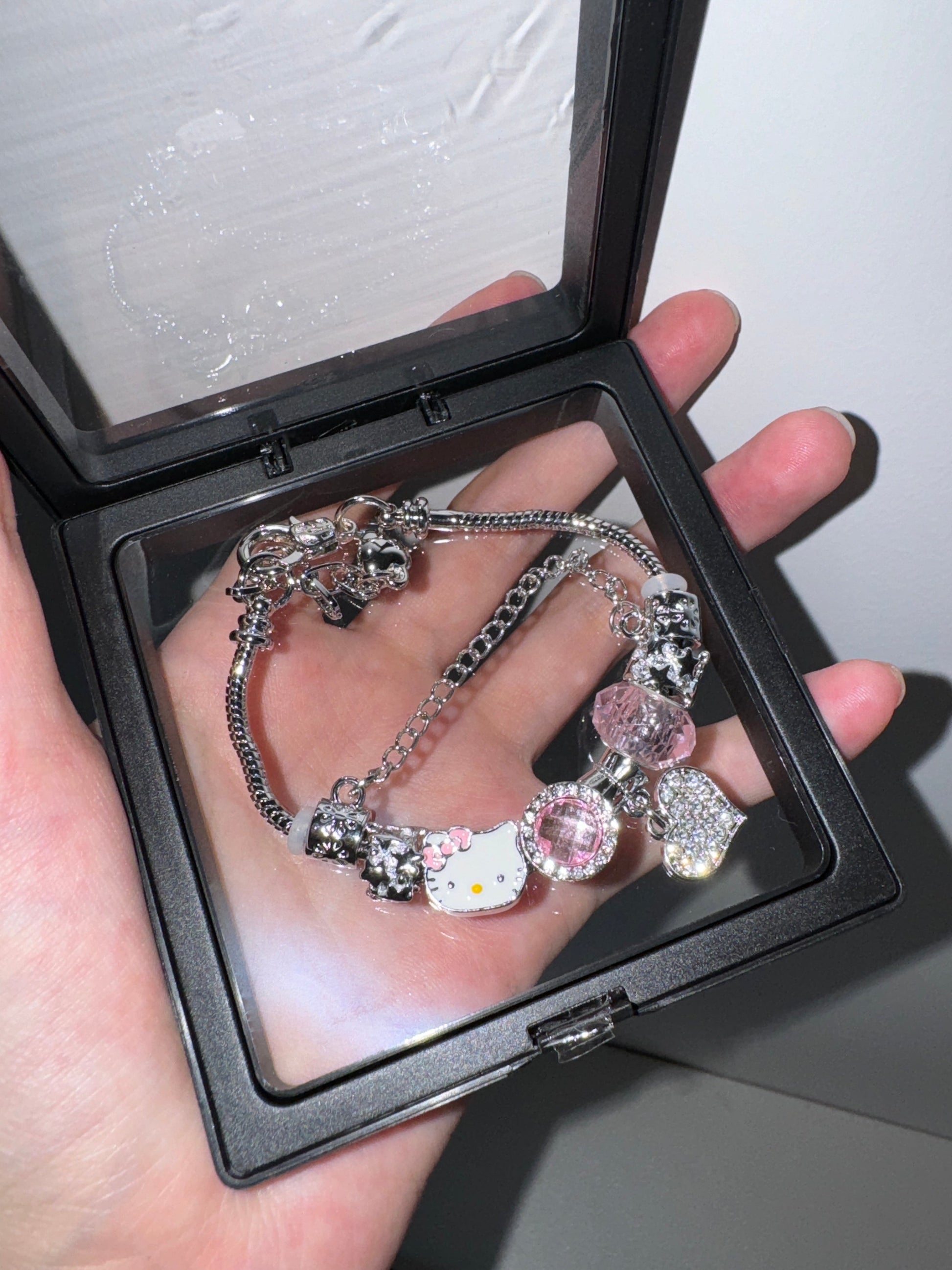 KT Pandora Charm Bracelets Stainless Steel Bangle Bracelet Birthday Christmas Jewelry Gift for Women Girls